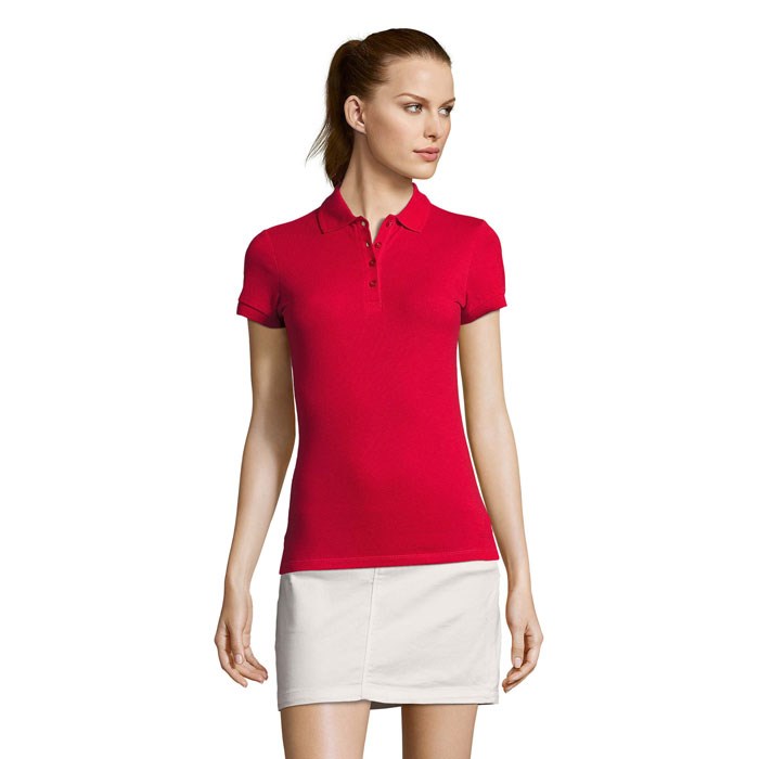 SOL'S PASSION Damen Polo-Piqué. Große Farbauswahl. Stylischer Damenschnitt. Rippkragen und -bündchen, Nackenband, Kurzarm, Seitennähte, Knopfleiste mit 4 farblich abgestimmten Knöpfen. Taillierter Schnitt, gerade am Saum mit Seitenschlitzen. Ersatzknopf innen. Material: 170g/m² in 100% gekämmter, ringgesponnener Baumwolle.