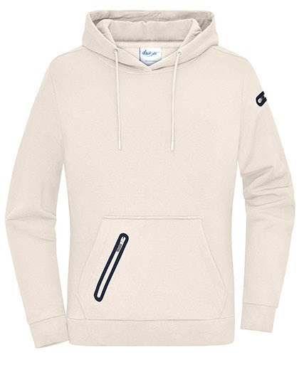 Hochwertige Interlock Qualität | Angenehme Materialmischung aus BIO-Baumwolle, recyceltem Polyester und Elasthan | Technische Details | Kängurutasche mit zusätzlicher Reißverschlusstasche | Reißverschlusstasche auf linkem Ärmel | Reißverschlusstaschen umrandet mit modischem Tape | Leicht tailliert