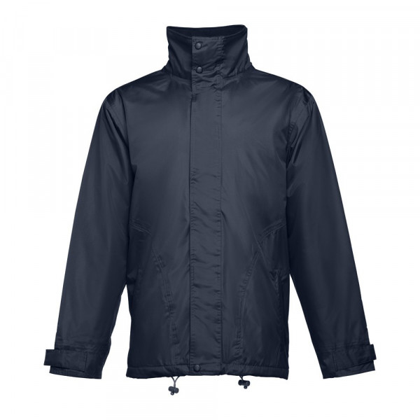 Parka aus 100% Polyester, gepolstert - Aussenseite (240g/m²) aus 100% Polyester-Pongee 240 und wasserdichter PVC-Beschichtung, Innenseite (65g/m²) aus 100% Polyester-Taft, Füllung aus 100% Polyester (80g/m²). Der Parka hat einen mit schwarz ausgekleideten Polarkragen, der mit einem Klettverschluss schliessbar ist. Die Kapuze ist faltbar und somit leicht im Kragen zu verstauen. Die Schnurbänder mit schwarzem Stopper am Kragen und an der Jackenunterseite ermöglichen eine korrekte Anpassung. Der Reissverschluss hat eine Klettverschlussabdeckung, die zusätzlich mittels Druckknöpfen geschlossen werden kann. 2 Außentaschen mit Abdeckung und 2 Innentaschen mit Klettverschluss. Mit geripptem Innenbund in 2x2, verstellbarem Ärmelbund ebenfalls mit Klettverschluss. Der Reißverschlusszugang auf der Rückseite vereinfacht die Veredelung. Größen: XS, S, M, L, XL, XXL