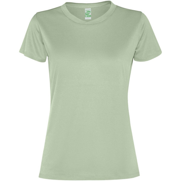Leichter Stoff aus recyceltem Polyester. Kragen mit gekreuztem Detail und Abdecknähten. Rückenpasse und Ärmel aus atmungsaktivem Stoff. Vorwärts- und Schrägnähte an den Seiten und Schultern. Abgerundeter Saum. Kombination aus atmungsaktiven und elastischen Stoffen. Abnehmbares Etikett.