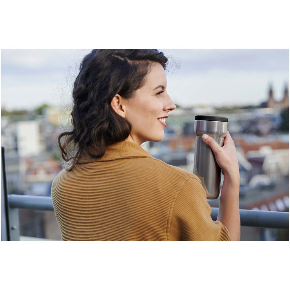 Der 375 ml Ellipse Isolierbecher besteht aus robustem Edelstahl und ist ideal für unterwegs. Er hält Getränke bis zu 4 Stunden heiß und bis zu 8 Stunden kalt. Damit eignet er sich sowohl für den morgendlichen Kaffee als auch für erfrischende Kaltgetränke. Der Becher ist 100 % auslaufsicher, passt in fast jeden Getränkehalter und ist BPA-frei – für den sicheren täglichen Gebrauch. Zur Erhaltung des Finishs wird Handwäsche empfohlen.