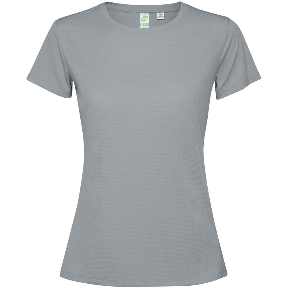 Funktions T-Shirt für Damen. Kragen mit passenden Nähten. Rückensaum etwas länger als der Frontsaum. Seitennähte nach vorne versetzt.