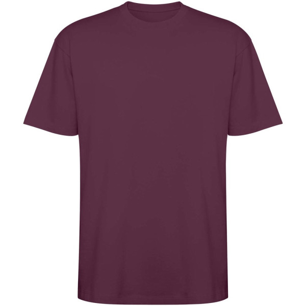Oversize T-Shirt. Rundhalsausschnitt aus 2x1 Rippstrick mit abgestimmten Nahtabdeckungen. Seitennähte. Breite Doppelnähte an Ärmeln und Saum. Abnehmbares Etikett.
