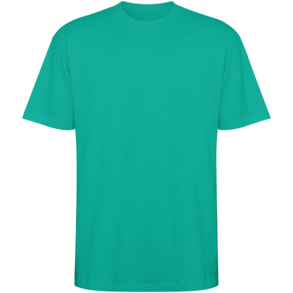 Oversize T-Shirt. Rundhalsausschnitt aus 2x1 Rippstrick mit abgestimmten Nahtabdeckungen. Seitennähte. Breite Doppelnähte an Ärmeln und Saum. Abnehmbares Etikett.