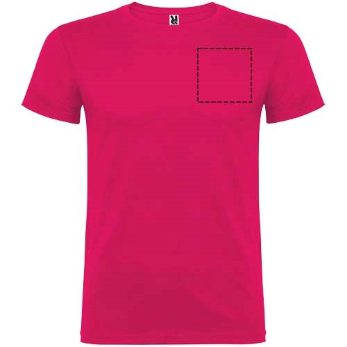 Kurzärmeliges T-Shirt mit doppellagigem Rundhalsausschnitt aus Elasthan, hergestellt aus schlauchförmigem Material für Erwachsene. Verstärkte und verdeckte Nähte am Kragen. Herausnehmbares Etikett. Das Modell ist 190 cm groß und trägt Größe L.