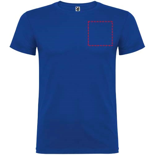 Kurzärmeliges T-Shirt mit doppellagigem Rundhalsausschnitt aus Elasthan, hergestellt aus schlauchförmigem Material für Erwachsene. Verstärkte und verdeckte Nähte am Kragen. Herausnehmbares Etikett. Das Modell ist 190 cm groß und trägt Größe L.