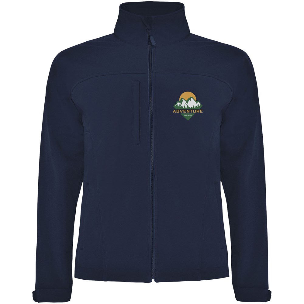 3-lagige Softshell-Jacke: Durchgehender Reißverschluss mit Kinnschutz und Zipper. Außentasche auf der Brust mit Reißverschluss und Zipper. Außentaschen mit Reißverschluss und Zipper. Klettverschlüsse an den Ärmelbündchen. Ausschnitt oder Paspel auf der Vorderseite der Brust. Ausschnitt oder vorgeformter Einsatz am Rücken. Saum mit elastischer Kordel und verstellbaren Stoppern innen. 1000 mm Wassersäule. Winddicht. Das Modell ist 184 cm groß und trägt Größe L.