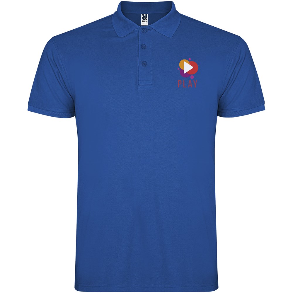 Kurzärmeliges Poloshirt für Kinder. Verstärkte und verdeckte Nähte am Innenkragen. 1x1 Rippstrickbündchen an Ärmeln und Kragen. Seitennähte. 3-Knopfleiste und Seitenschlitze. Optionale Tasche. Herausnehmbares Etikett. Das Modell ist 124 cm groß und trägt Größe 5/6.