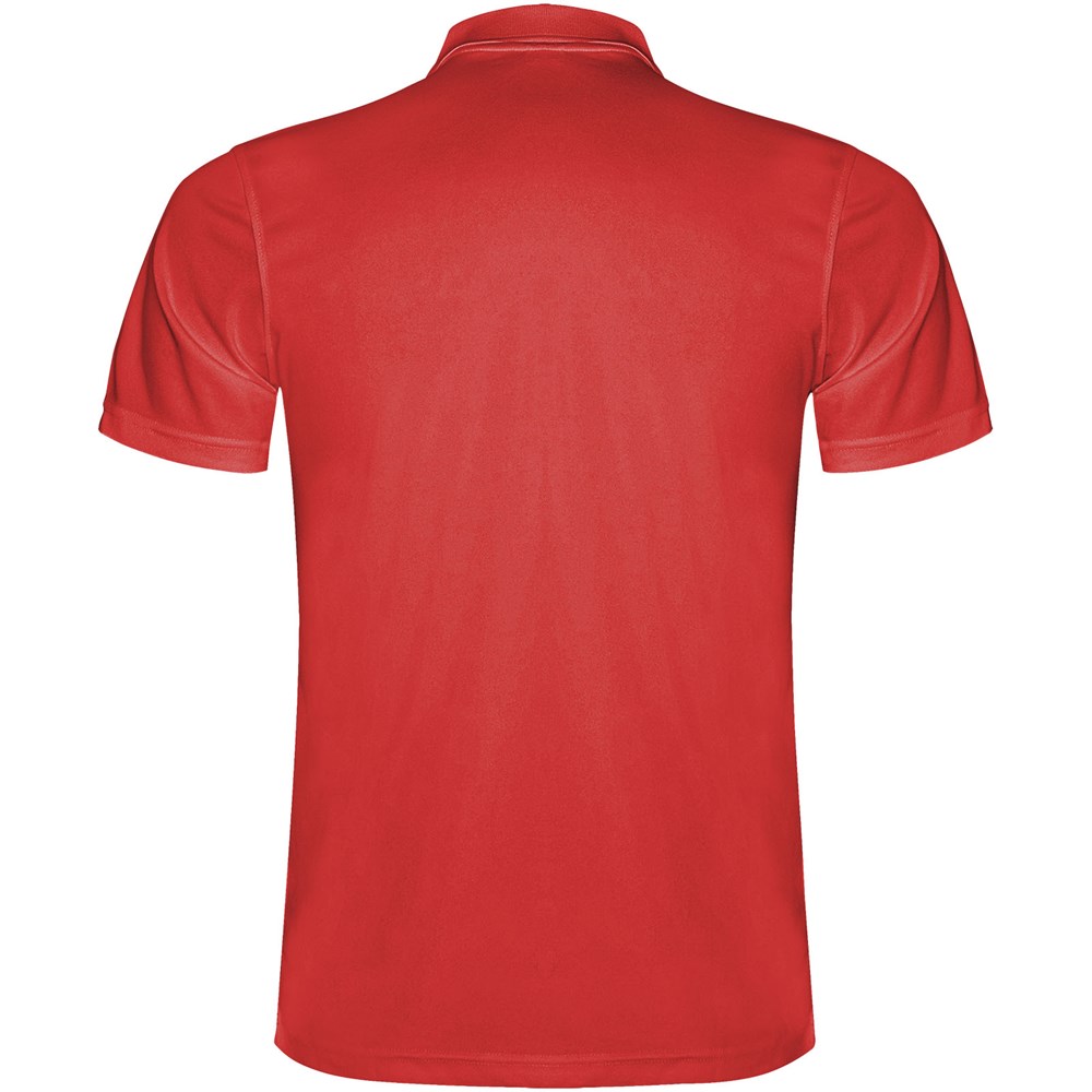 Kurzärmeliges Funktions-Poloshirt. Gestrickter Kragen mit 3-Knopfleiste. Atmungsaktives, leicht zu waschendes und zu trocknendes Material. Herausnehmbares Etikett. Technisches Gewebe. Atmungsaktiver Stoff. Das Modell ist 184 cm groß und trägt Größe L.