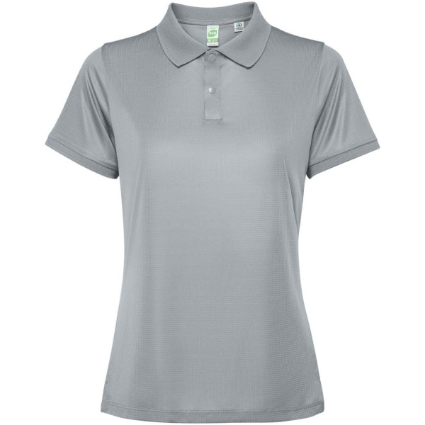 Kurzärmeliges, tailliertes Poloshirt für Damen. Verstärkte und verdeckte Nähte am Innenkragen. 1×1-Rippstrick an Bündchen und Kragen. Seitennähte. Knopfleiste mit 3 Knöpfen und Seitenschlitze.