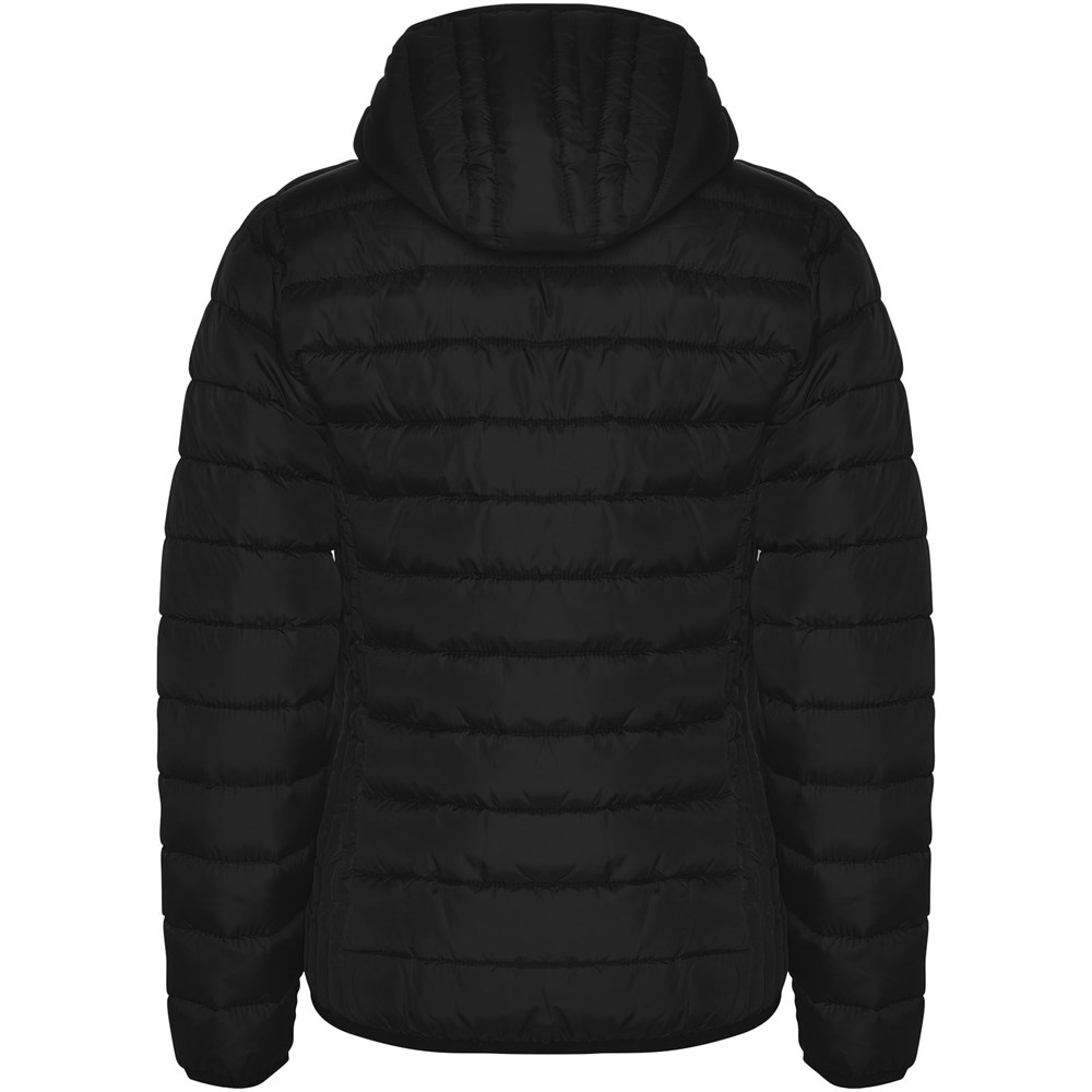 Steppjacke für Damen mit federleichter und softer Wattierung und angesetzter Kapuze. Umgekehrte Reißverschlüsse mit passendem Kinnschutz. Zwei Fronttaschen mit Reißverschluss. Passende elastische Einfassungen an Ärmeln, Saum und Kapuze. Kontrastfarbenes Innenfutter. Leichtes und faltbares Kleidungsstück. Wasserabweisend. Winddichtes Modell.