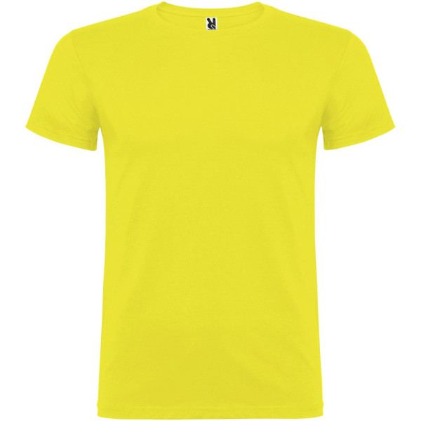 Kurzärmeliges T-Shirt mit doppellagigem Rundhalsausschnitt aus Elasthan, hergestellt aus mit Seitennähten. Verstärkte und verdeckte Nähte am Kragen. Herausnehmbares Etikett. Das Modell ist 120 cm groß und trägt Größe 5/6.