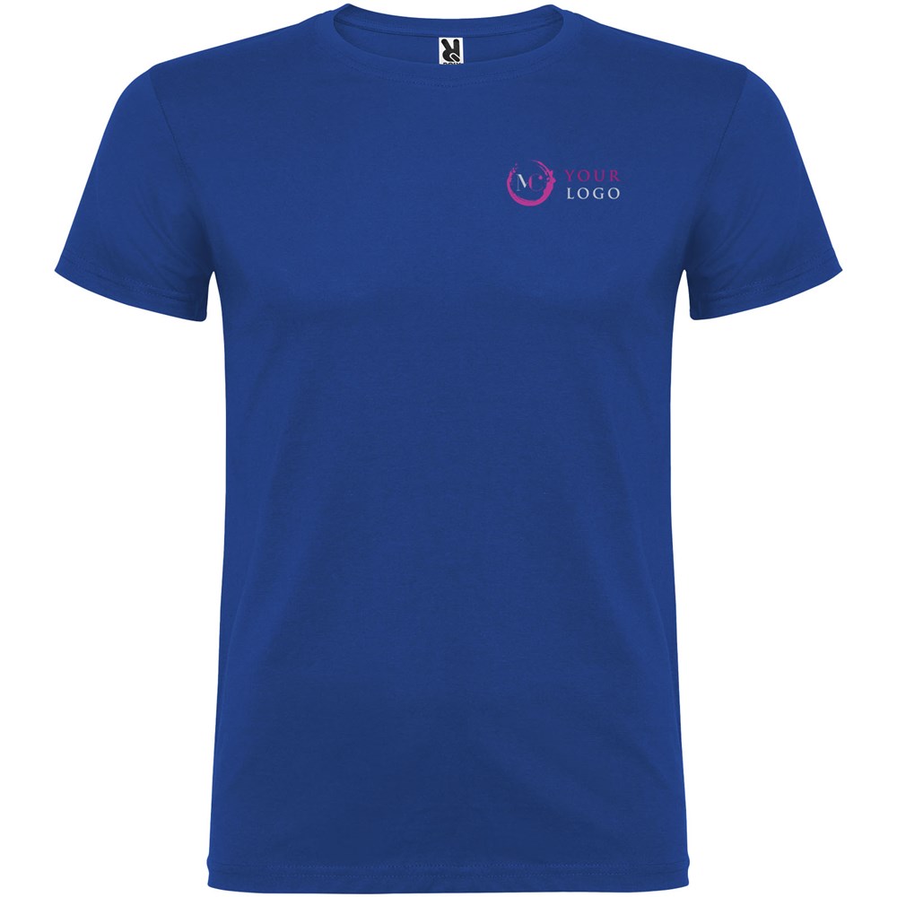 Kurzärmeliges T-Shirt mit doppellagigem Rundhalsausschnitt aus Elasthan, hergestellt aus mit Seitennähten. Verstärkte und verdeckte Nähte am Kragen. Herausnehmbares Etikett. Das Modell ist 120 cm groß und trägt Größe 5/6.