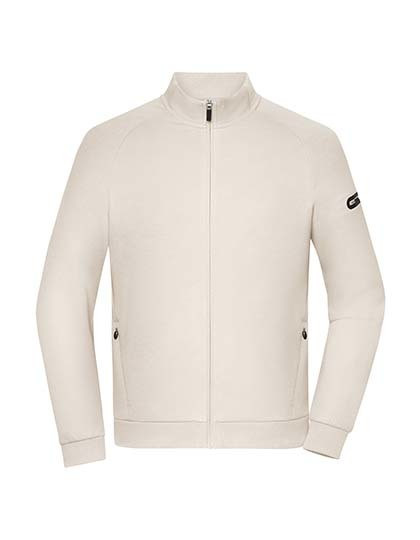 Hochwertige Interlock-Qualität | Angenehme Materialmischung aus BIO-Baumwolle, recyceltem Polyester und Elasthan | Stehkagen | Durchgehender Reißverschluss | 1 Reißverschlusstasche umrandet mit modischem Tape auf linkem Ärmel | 2 seitliche Reißverschlusstaschen | Arm- und Bundabschluss mit elastischen Bündchen
