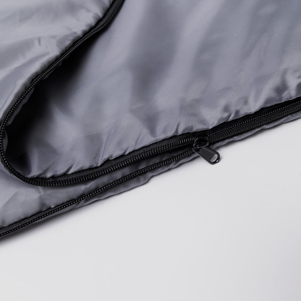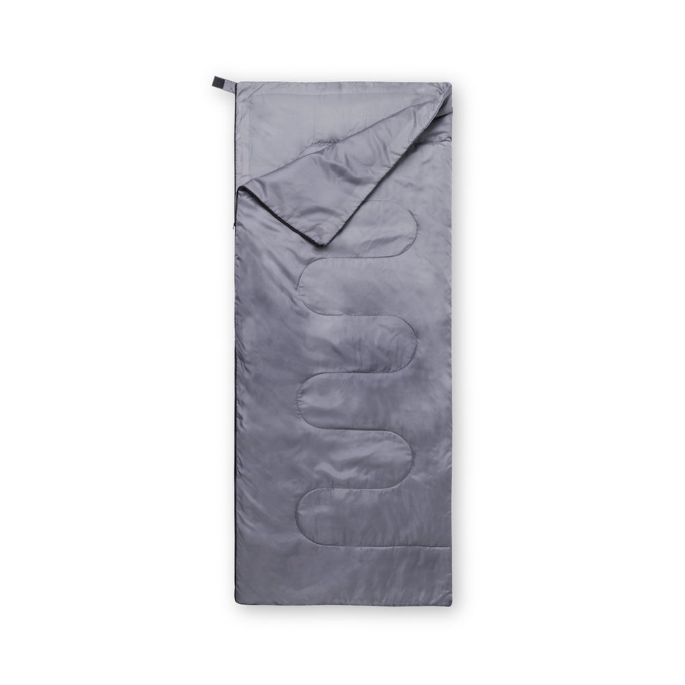 Schlafsack aus strapazierfähigem RPET 190T Polyester, warm und angenehm im Griff, in grau. Mit dicker Innenpolsterung und durchgehendem Reißverschluss. Passende Hülle aus RPET, mit Kordelzugverschluss, Versteller und Außenetikett mit RPET-Symbol.Das RPET-Material wird aus recyceltem Kunststoff hergestellt, wodurch die Wiederverwendung von Kunststoffabfällen gefördert und ein Beitrag zur Nachhaltigkeit auf unserem Planeten geleistet wird.