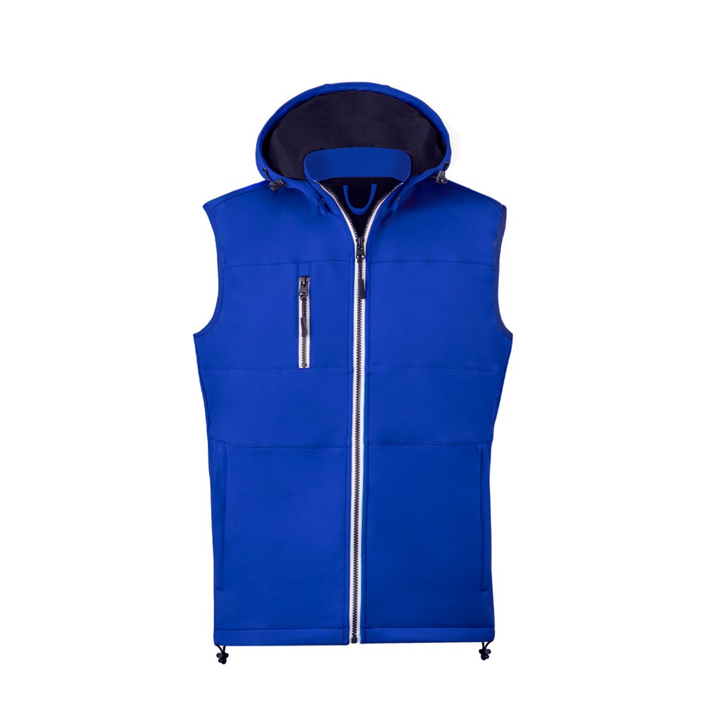 Weste aus strapazierfähigem und atmungsaktivem 300g/m2 Softshell-Material. Moderner Schnitt, mit zentralem Reißverschluss, Seitentaschen und praktischer Brusttasche mit Reißverschlüssen und kontrastfarbenen Zippern. Stehkragen mit verstellbarer und abnehmbarer Kapuze. Unterer Saum mit verstellbarem Kordelzug. Wind- und wasserabweisendes Softshell-Außenmaterial und warmes Mikrofleece-Futter in Kontrastfarbe. Erhältlich in den Größen XS, S, M, L, XL, XXL.