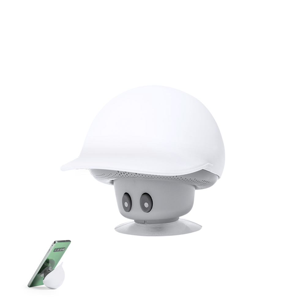 Lautsprecher in originellem Pilzdesign mit Kappe, mit Handyhalterungsfunktion. Bluetooth® 5.0-Konnektivität, mit 3 W Leistung und Freisprechfunktion. Gehäuse mit weicher Gummibeschichtung und Saugnapf für die Haltefunktion. Micro-USB-Kabel im Lieferumfang enthalten und in einer attraktiven Kraft-Design-Box verpackt. Gebrauchsanweisung in Englisch und Spanisch erhältlich.