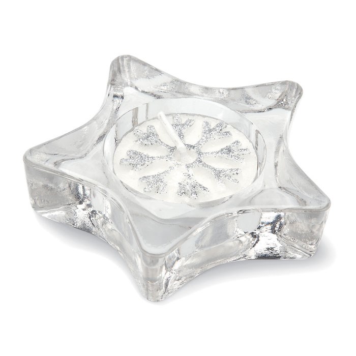 Sternförmiger Teelichthalter aus Glas. Geschenkverpackung mit transparentem Deckel und silbernem... mehr