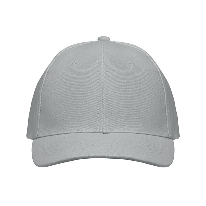 6-Panel-Baseball-Cap aus gebürsteter Baumwolle 260 g/m² mit silberner Schnalle aus Stahl mit Einstecklasche. Sechs farblich abgestimmte, umstickte Belüftungslöcher. Größe 7 1/4.