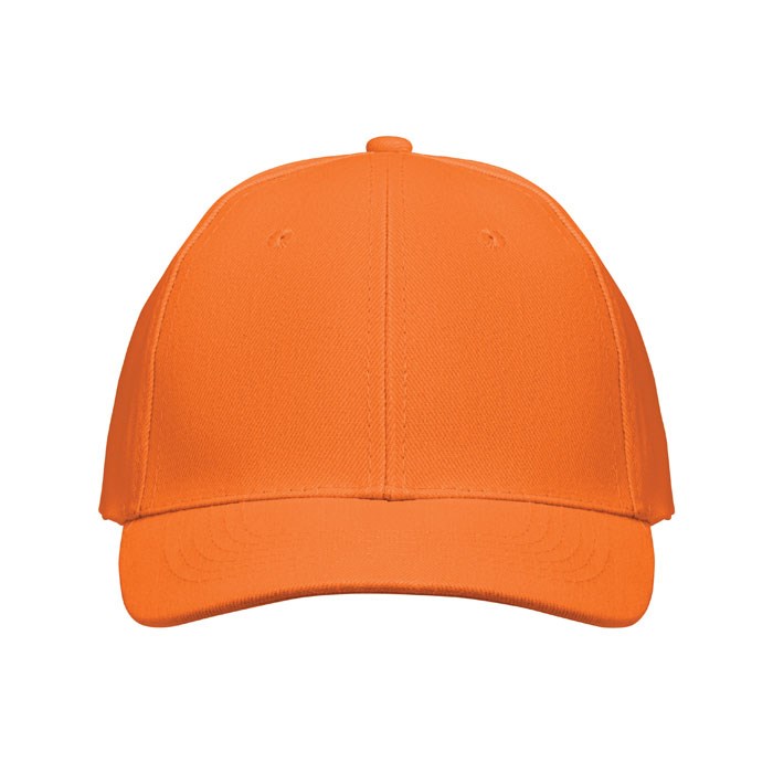 6-Panel-Baseball-Cap aus gebürsteter Baumwolle 260 g/m² mit silberner Schnalle aus Stahl mit Einstecklasche. Sechs farblich abgestimmte, umstickte Belüftungslöcher. Größe 7 1/4.