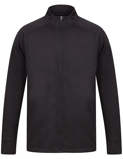 Sportanzugjacke aus Strickgewebe mit kontrastfarbenen äußeren Ärmeleinsätzen | Kontrastfarbener Front-Reißverschluss | Seitliche Taschen mit Reißverschluss | Trichterkragen und Elastische 1x1 Bündchen | Feststellschieber an allen Reißverschlüssen