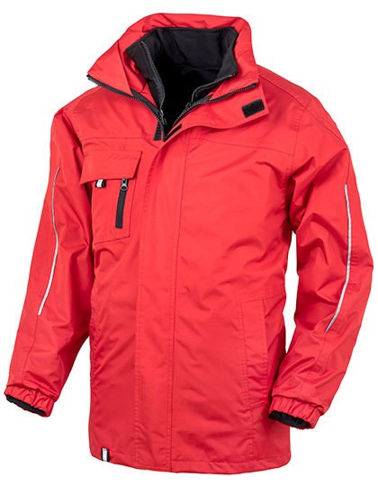 Außenjacke: Wasserdicht bis 3.000 mm | Windproof | Nähte getaped | Innentaschen | Brusttasche mit Reißverschluss | Durchgehender 2-Wege-Reißverschluss vorne | Vordertaschen seitlich | Reflektierende Details | Windschutzleiste mit Klettverschluss | Verdeckte Kapuze mit Kordelzug | Zweiter Reißverschluss innen zum Befestigen der Innenjacke | Softshell-Innenjacke: Wasserabweisend | Windproof | Atmungsaktiv | Fronttaschen mit Reißverschluss | Elastische Ärmelbündchen | Innenjacke: 280 g/m² 2-lagiges Softshell Material aus 100% Polyester | Veredelungszugang: Außen – innen auf der Rückseite unten; Innen – offen