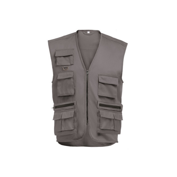 Weste (200 g/m²) aus Polyester (65%) und Baumwolle (35%) mit mehreren Taschen und wasserabweisende Behandlung. Größen: 3XL