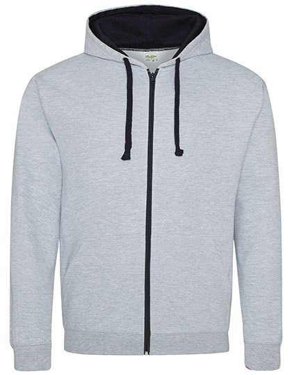 Ringgesponnene Baumwolle | Standard-Passform | Kapuzen-Sweat-Jacke mit durchgehendem Reißverschluss | Kontrastierender YKK-Reißverschluss aus Kunststoff | Doppellagige Kapuze mit kontrastfarbener Innenseite | Flache Zugbänder in Kontrastfarbe | Kängurutaschen | Gebürstetes Innenvlies | Gerippte Ärmelabschlüsse und Saum | 100 % Baumwoll-Obermaterial | Abreißetikett