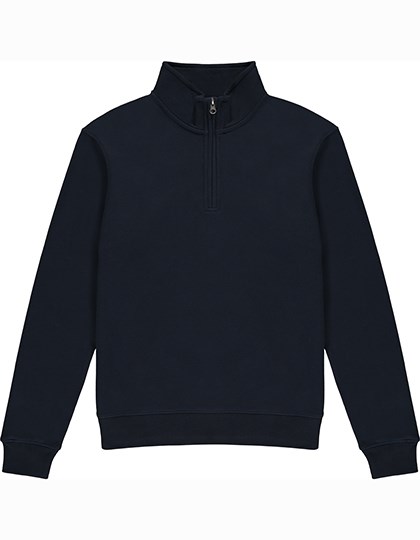 Herren-Sweatshirt mit 1/4-Reißverschluss vorne und Kadettenkragen | Reguläre Passform | Nackenbereich und Innenkragen aus gleichem Material | Verklebtete Schulternähte | Vollständig doppellagige Manschetten und Paspeln mit doppelter Kantennaht | Doppellagiger Kadettenkragen | Doppelt genähte Armausschnitte und Schulternähte | Zirkoniumfarbener Metall-YKK-Reißverschluss und -Zug | Herausnehmbares Nackenlabel | Verdeckter Reißverschluss für bessere Bedruckbarkeit