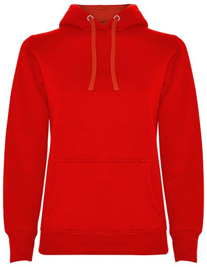 Innen angeraut | Tailliert | Kapuze innen (Single Jersey), Kordelzug und Metall-Ösen in Kontrastfarbe | Nackenband mit Fischgrätmuster | Kangorootasche | Ärmelbündchen und Saum mit 1x1 Ripp-Strick und Elasthan | Ärmelbündchen mit Daumenöffnung | Herausreißbares Label