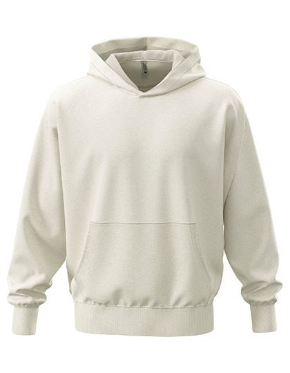 Aus einer schweren Mischung von gekämmter Baumwolle und Polyester | Oversized | Unisex | Mit doppellagiger Kapuze | Mit einem bedruckbaren Halbmond | Breite Rippbündchen an Ärmeln, Kragen und Bund