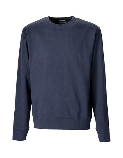 100% regenerierter Stoff | Recycelte Baumwolle und recycelter Polyester | Unisex | Fleece-Innenseite | Rundhalsausschnitt, Ärmelbündchen und Saum mit Ripp-Strick | Verstärkung am Kragen | Seitennähte