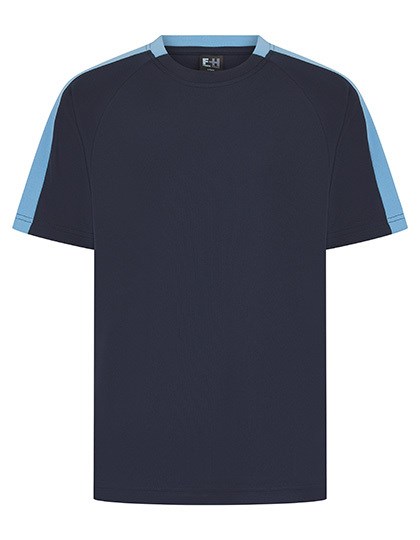Single Jersey | Unisex | Eigenmaterial-Ärmeleinsätze in Kontrastfarbe | Sportliche Passform | Die ableitende Oberfläche sorgt für Feuchtigkeitsregulierung | Schnell trocknend und atmungsaktiv | 2-teiliger Kragen aus Eigenmaterial in Kontrastfarbe | Raglan-Schulter | Abreißetikett