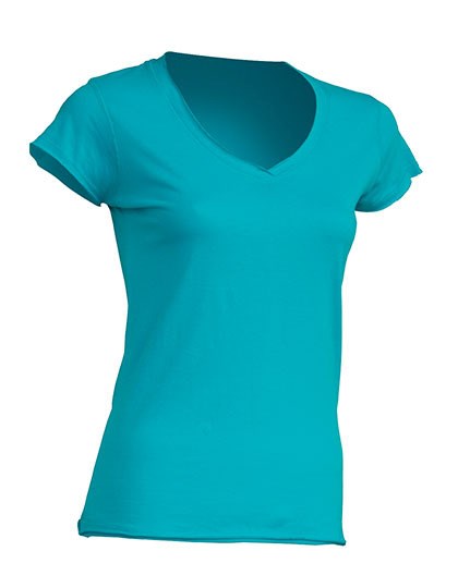Kurzarm | V-Ausschnitt | Kragen, Ärmel und Saum mit offenen Kanten | Single Jersey