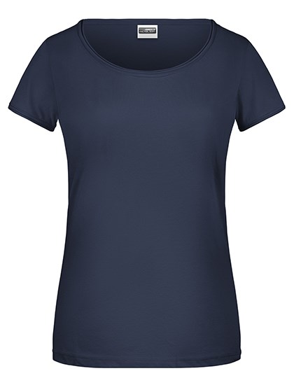 Gekämmte, ringgesponnene Bio-Baumwolle, Single Jersey | Halsferner Rundhalsausschnitt und Ärmel mit Rollsaum | Tear off!® - Label | Leicht taillliert
