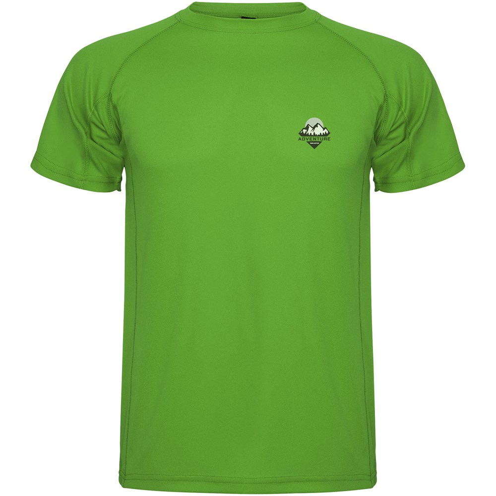 Kurzärmeliges Funktions-T-Shirtmit Raglanärmeln. Rundhalsausschnitt mit verdeckten Nähten. Seitenschlitze mit passender Überwendlingsnaht. Atmungsaktiver Stoff, leicht zu waschen und zu trocknen. Herausnehmbares Etikett. Technisches Gewebe. Ultravioletter Schutzfaktor.