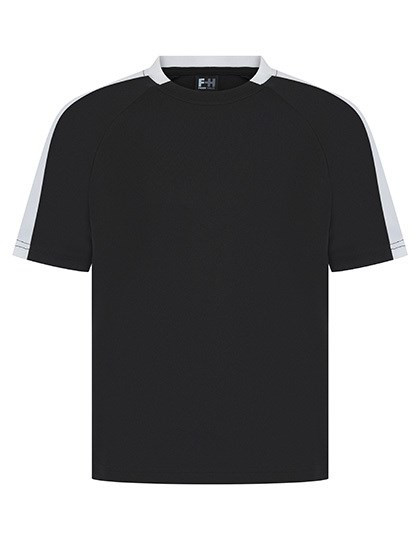 Single-Jersey | Material mit feuchtigkeitsregulierender Oberfläche | 2-teiliger Kontrastkragen | Crewneck | Raglan-Ärmel | Seitliche Kontrasteinsätze aus dem gleichen Stoff am Ärmel | Abreißetikett