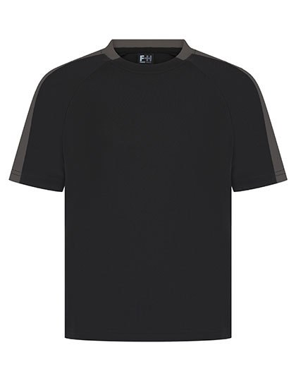 Single-Jersey | Material mit feuchtigkeitsregulierender Oberfläche | 2-teiliger Kontrastkragen | Crewneck | Raglan-Ärmel | Seitliche Kontrasteinsätze aus dem gleichen Stoff am Ärmel | Abreißetikett