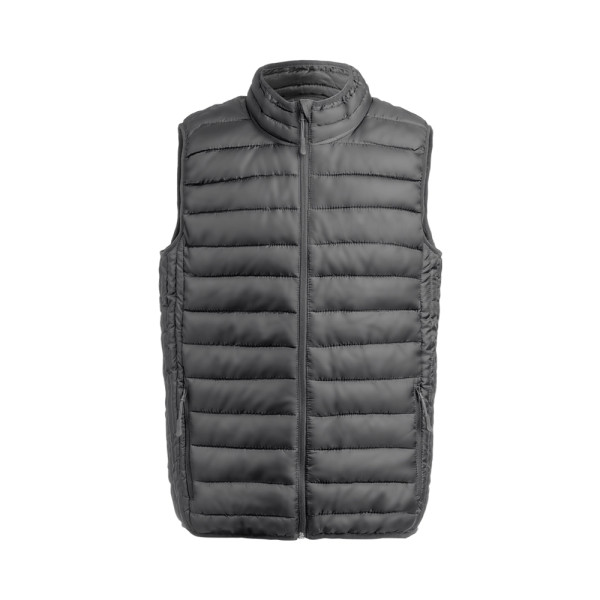 Weste au warmem und weichem Material aus 100% Polyester. Aus extra leichtem, kompaktem, wasser- und winddichtem Material, mit Innenwattierung. Reißverschluss mit Zipper und großen Seitentaschen. Kragen mit Reißverschluss und Knopfleiste und Seitentaschen mit Zipper. Inklusive praktischer Tragetasche. Erhältlich in den Größen S, M, L, XL, XXL.